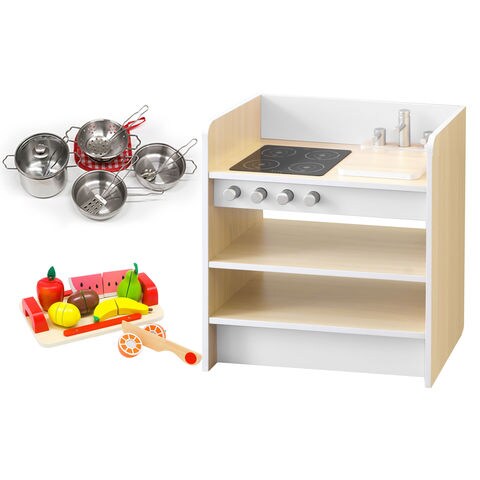 RiZKiZ ままごと キッチン (ホワイト/本体&お鍋&フルーツセット) 2WAYタイプ 木製 ごっこ遊び ままごとキッチン 子供 子ども 3歳~ ままごとセット ままごとキッチンセット 収納 台所 おもちゃ 玩具 お料理 知育玩具 キッズ収納 お片付け クリスマス 送料無料