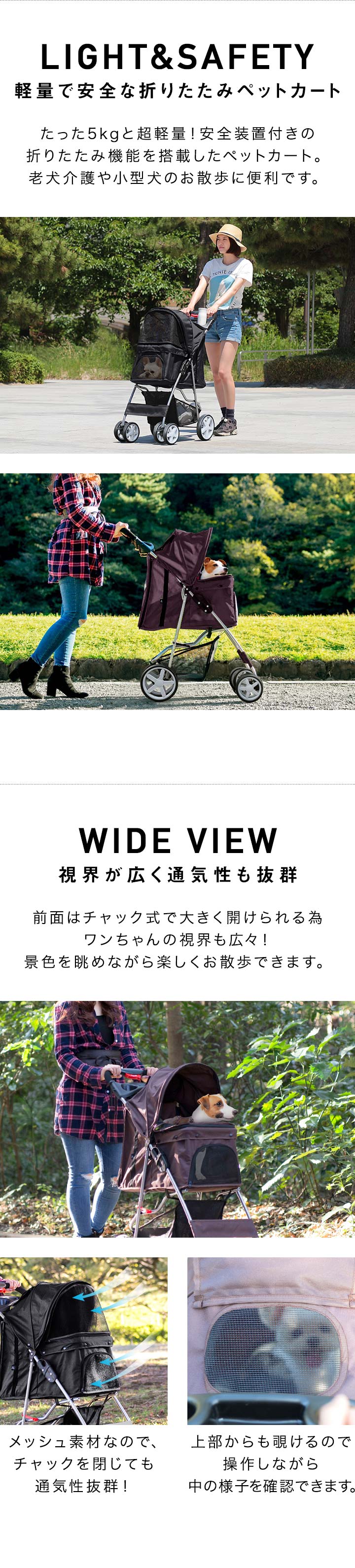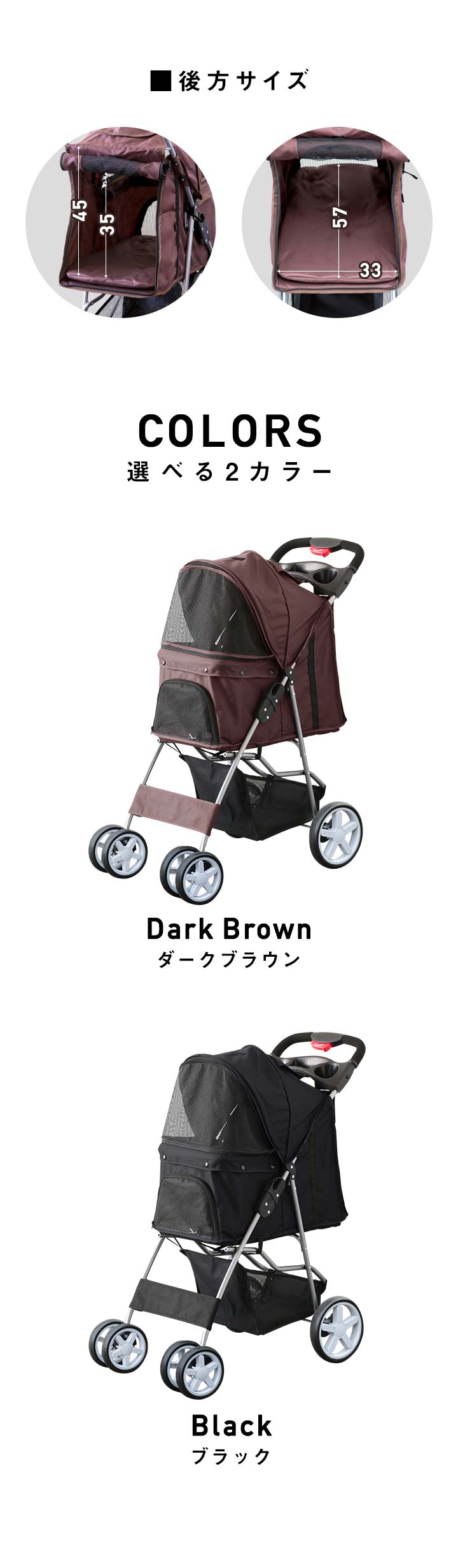 ペットカート 小型犬 中型犬 軽量 (ダークブラウン/カート本体のみ) ワンタッチ 折りたたみ 4輪 ドッグカート 犬カート 多頭 ブレーキ付き ストッパー付き ペットキャリー キャリーバッグ 犬用カート 犬用バギー 犬用ベビーカー 犬 猫 耐荷重15kg ペット カート バギー 送料無料