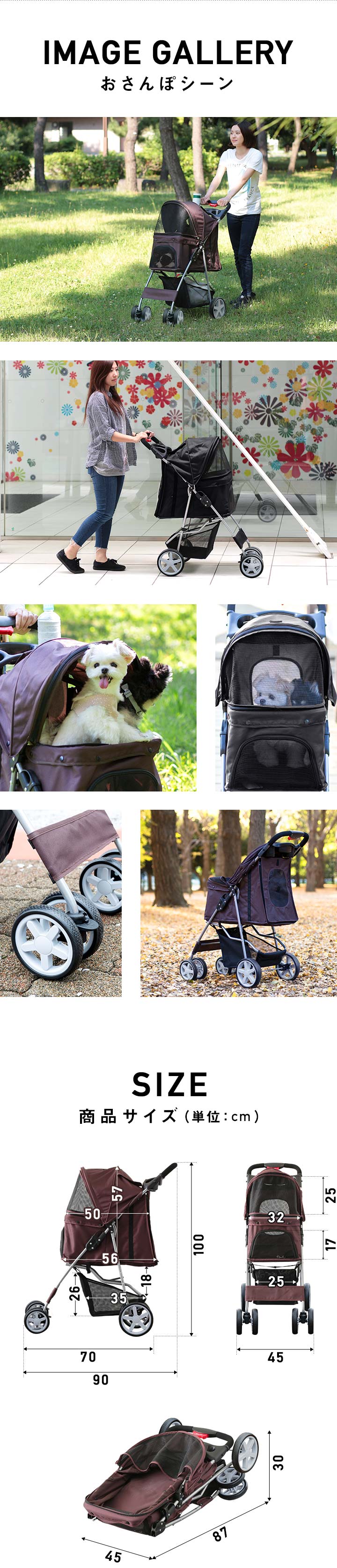 | サイズ: ・展開時:(約)45×90×100cm ・折りたたみ時:(約)45×87×30cm ・ケージ部分内寸:(約)28×55×53cm ・飛び出し防止リードの長さ:(約)40cm※2本付属 |
