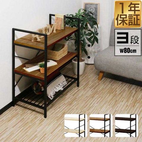 ラック スチール 幅80cm 3段 (オーク) シェルフ オープンラック ディスプレイラック 収納棚 アイアンシェルフ 三段 フリーラック 多目的ラック 本棚 マガジンラック 収納 棚 木製 間仕切り リビング収納 飾り棚 オープンシェルフ 北欧 送料無料