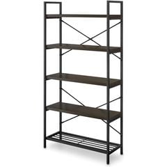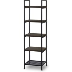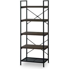 アイアンシェルフ 5段 木目天板 (オーク) 幅80cm×奥行43cm×高さ約155cm 収納棚 オープンラック スチールラック 見せる収納 送料無料