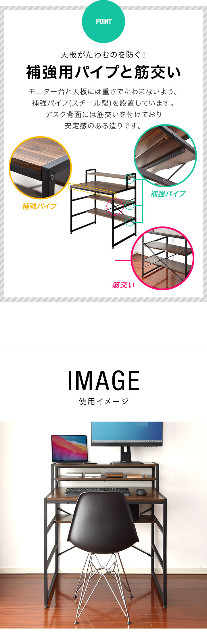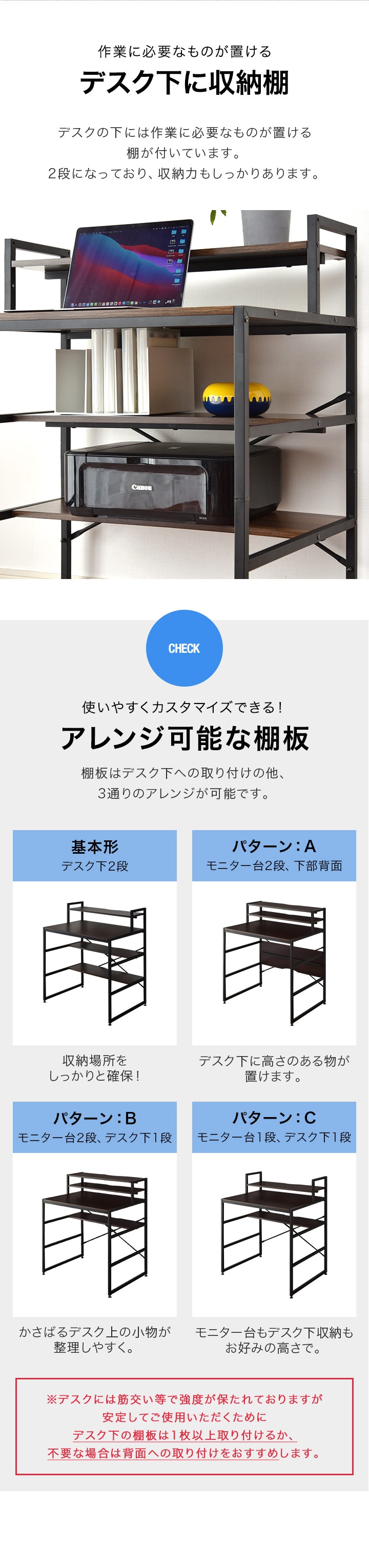 | 耐荷重: モニター台 : (約)10kg デスク天板 : (約)35kg 棚 : 1段あたり(約)10kg |