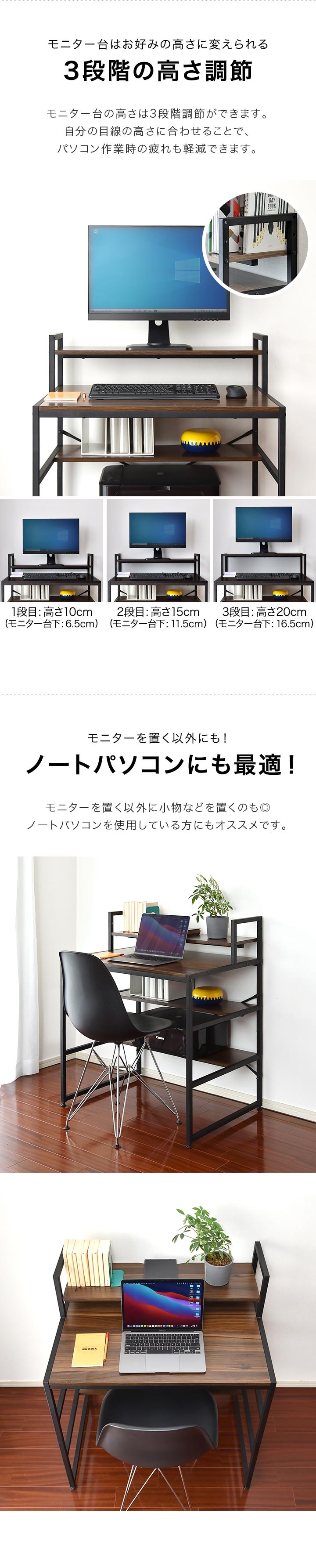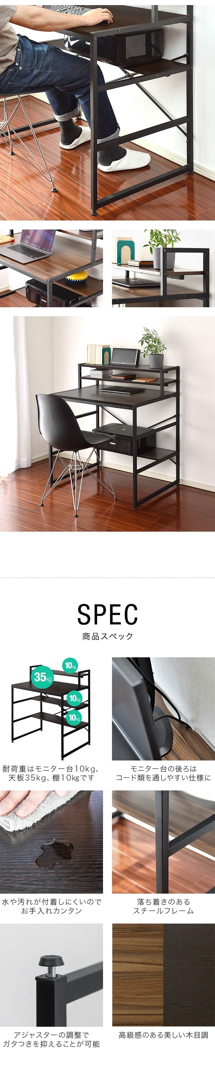 モニター台付き PCデスク (ダークブラウン) 幅80cm×奥行60cm 棚付き 机 省スペース スリム ハイタイプ パソコンデスク ワークデスク 作業机 収納 棚 PCボード デスク上置棚 一体型 書斎机 勉強机 木目 おしゃれ シンプル 在宅ワーク テレワーク 送料無料