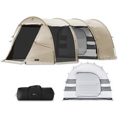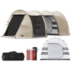 FIELDOOR テント 大型 (ライトベージュ/基本セット) ドームテント 620cm×260cm 2ルームテント 4人用 6人用 8人用 トンネルテント 620 耐水 遮熱 UVカット シェルター キャンプテント メッシュ ツールームテント インナーテント付き 前室 日よけ キャンプ 送料無料