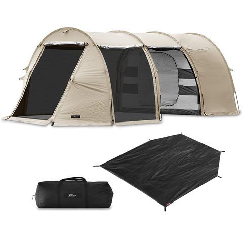 FIELDOOR テント 大型 (ライトベージュ/Cセット) ドームテント 620cm×260cm 2ルームテント 4人用 6人用 8人用 トンネルテント 620 耐水 遮熱 UVカット シェルター キャンプテント メッシュ ツールームテント インナーテント付き 前室 日よけ キャンプ 送料無料