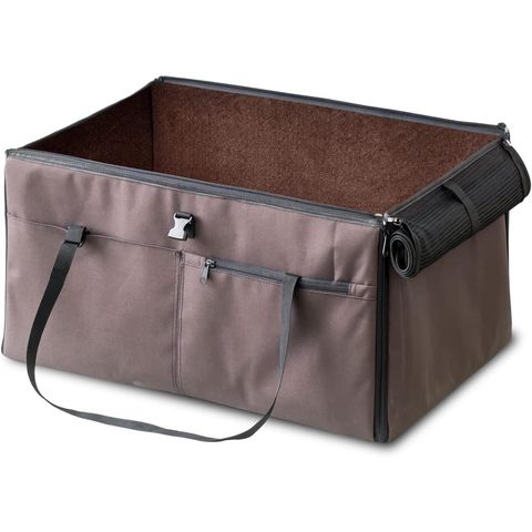 犬用 ドライブボックス ( Lサイズ/マイクロファイバー/ブラウン) 外が見える ペット 小型犬 中型犬 2匹 おしゃれ 車に乗せるとき 車酔い ドライブベッド ドライブBOX カーベッド 旅行 ペットキャリー 折りたたみ キャリーバッグ ペットベッド ペット用品 カー用品 送料無料