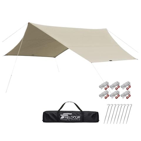 FIELDOOR タープテント ヘキサタープ (ライトベージュ:標準/タープ本体のみ・ポールなし) 大型 Lサイズ 530cm×570cm 6人~8人用 日よけ 六角形 UVカット 高耐水 簡易テント サンシェード オーニング コンパクト アウトドア BBQ キャンプ 送料無料