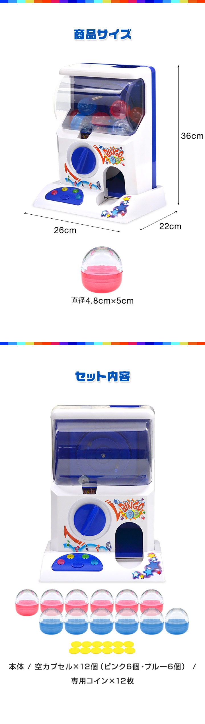 RiZKiZ カプセルトイマシーン (ギフト対応ラッピング配送) がちゃがちゃ 本体 カプセル マシーン がちゃ がちゃぽん カプセルトイ がちゃがちゃ本体 おもちゃ 玩具 子供 4歳~ BGM付き ゲームセンター パーティー くじ クリスマス プレゼント ギフト 送料無料