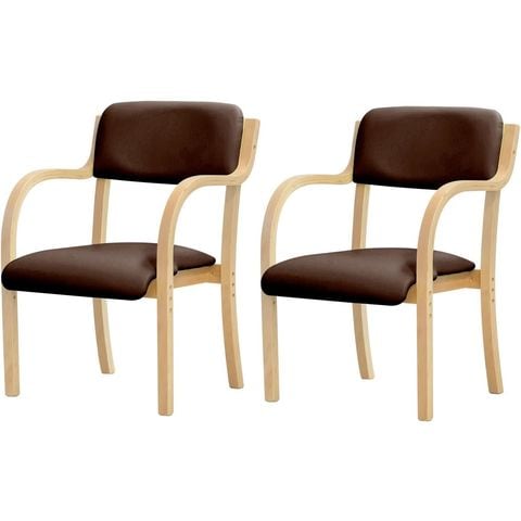 ダイニングチェア 肘付き 椅子 (2脚セット/ナチュラル×ダークブラウン) 介護椅子 スタッキングチェア ビニールレザー PVC ダイニングチェアー チェア リビングチェア 肘掛け付チェア いす スタッキング 介護施設 送料無料
