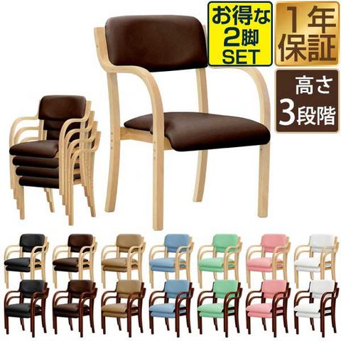 ダイニングチェア 肘付き 椅子 (2脚セット/ナチュラル×ピンク) 介護椅子 スタッキングチェア ビニールレザー PVC ダイニングチェアー チェア リビングチェア 肘掛け付チェア いす スタッキング 介護施設 送料無料