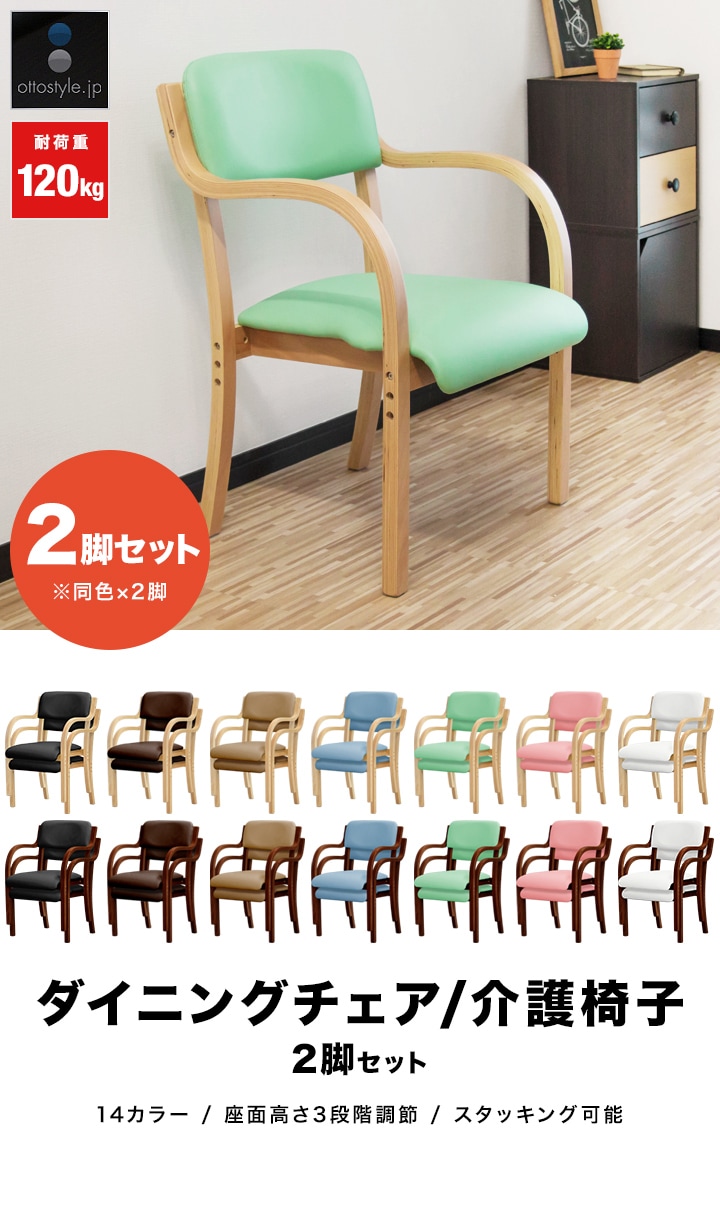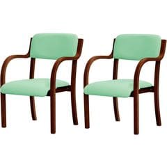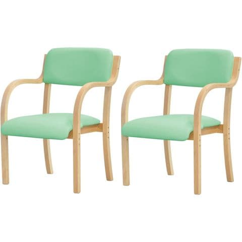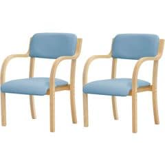ダイニングチェア 肘付き 椅子 (2脚セット/ナチュラル×ミントブルー) 介護椅子 スタッキングチェア ビニールレザー PVC ダイニングチェアー チェア リビングチェア 肘掛け付チェア いす スタッキング 介護施設 送料無料