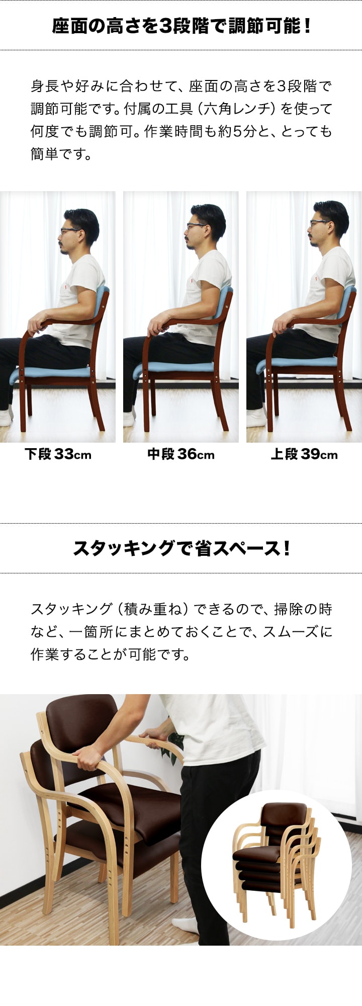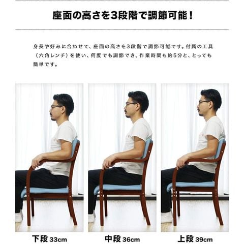| 座面の高さ: (約)33cm / 36cm / 39cm (3段階調節) |
