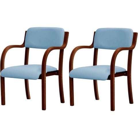 ダイニングチェア 肘付き 椅子 (2脚セット/ブラウン×ライトブルー) 介護椅子 スタッキングチェア ビニールレザー PVC ダイニングチェアー チェア リビングチェア 肘掛け付チェア いす スタッキング 介護施設 送料無料