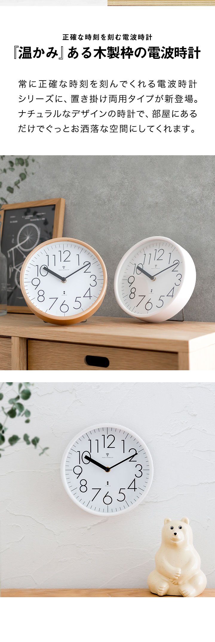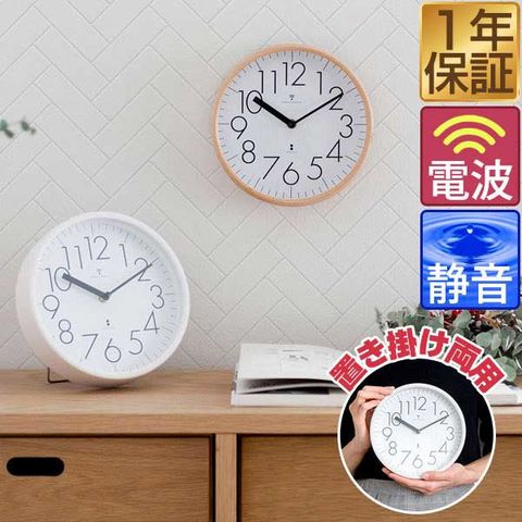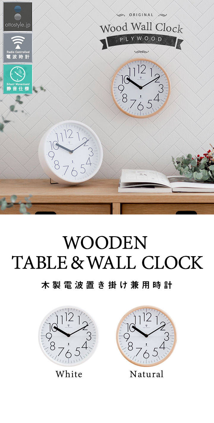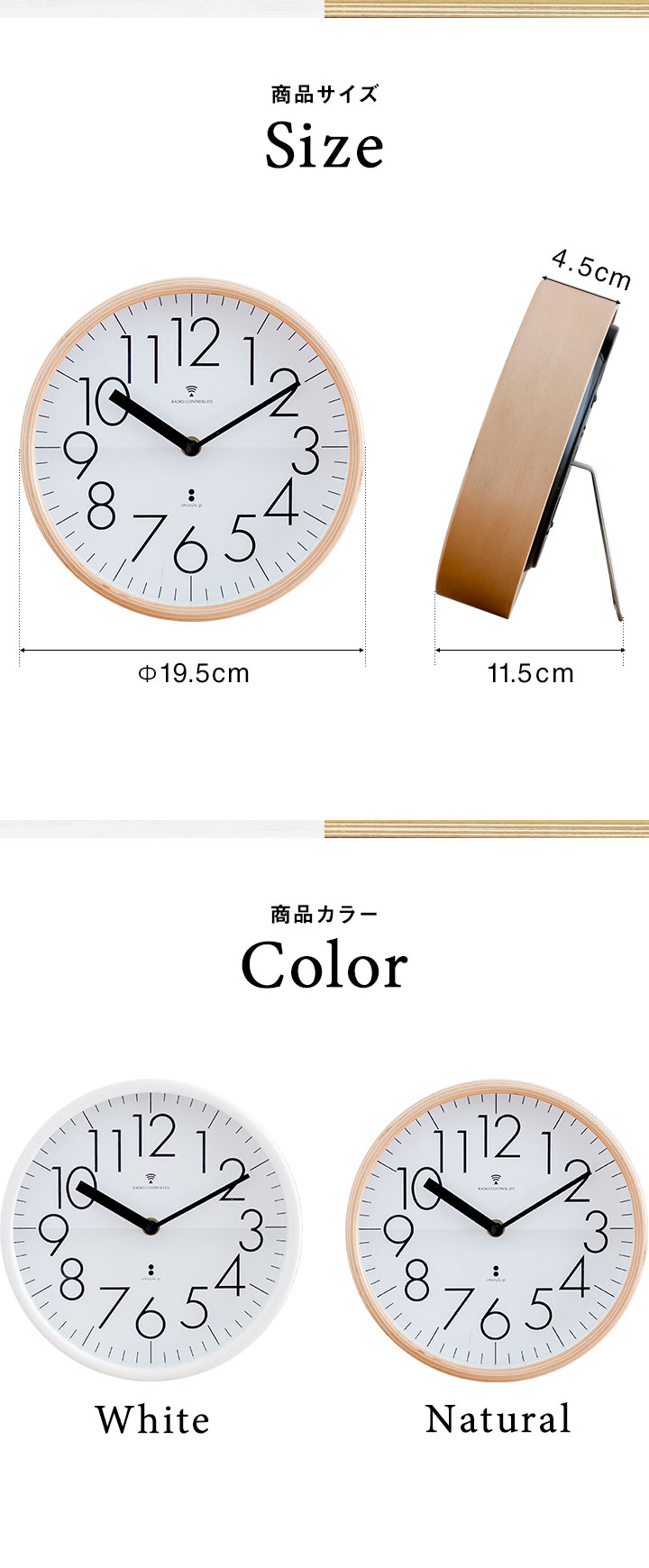掛け時計 電波時計 (ホワイト) 19.5cm 時計 アナログ 置き掛け兼用時計 プライウッド 木製 天然木 壁掛け 壁掛 静音 北欧 掛時計 置き時計 置時計 電波 かわいい 音がしない 静か クロック ウォールクロック 電波掛時計 電波置時計 直径19.5cm 送料無料