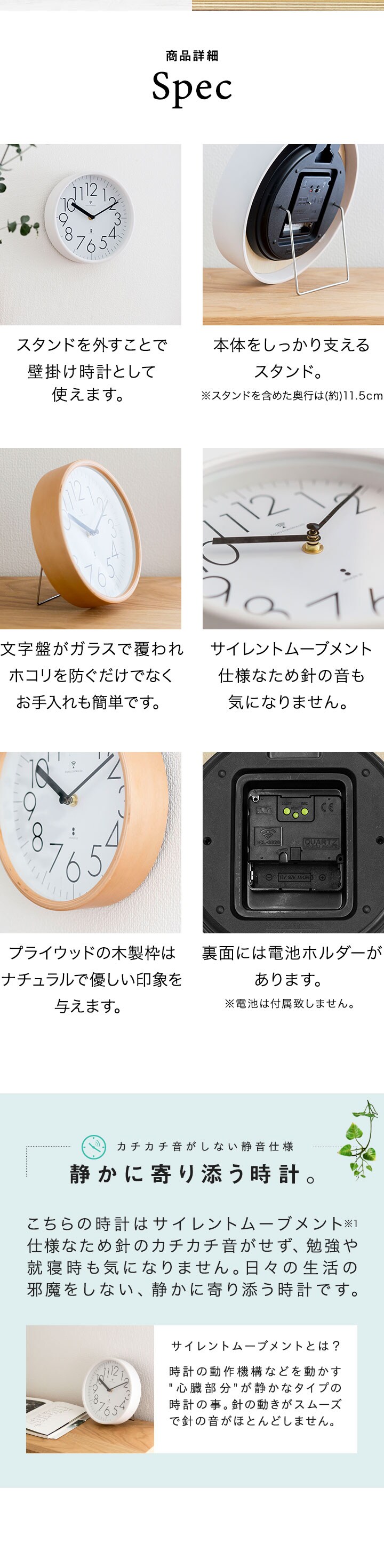 | サイズ: (約)直径19.5cm×奥行き11.5cm ※上記はスタンドを含めたサイズです。 ※時計本体の奥行は4.5cmです。 |