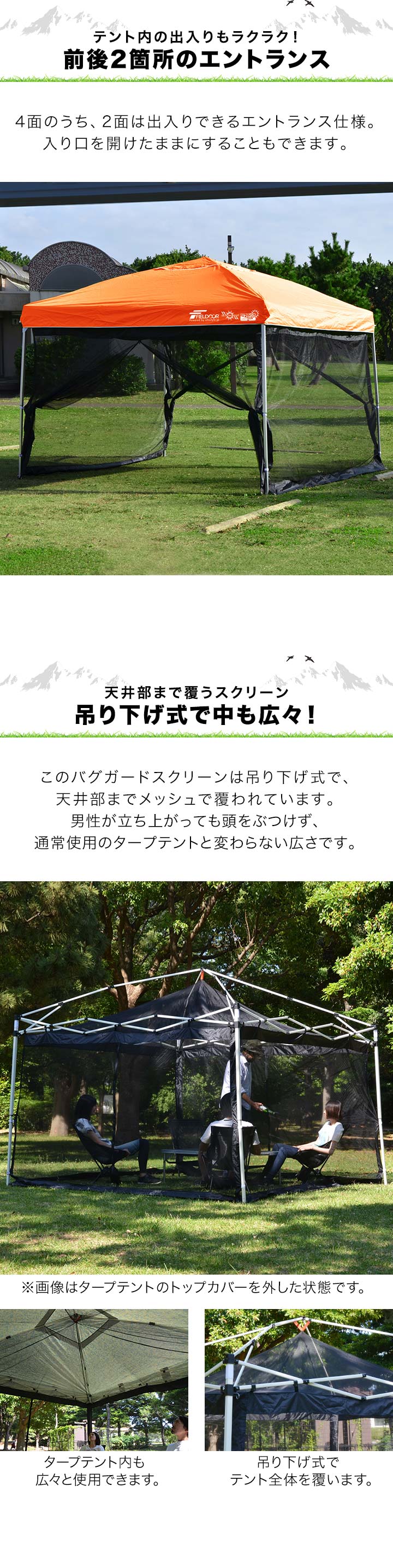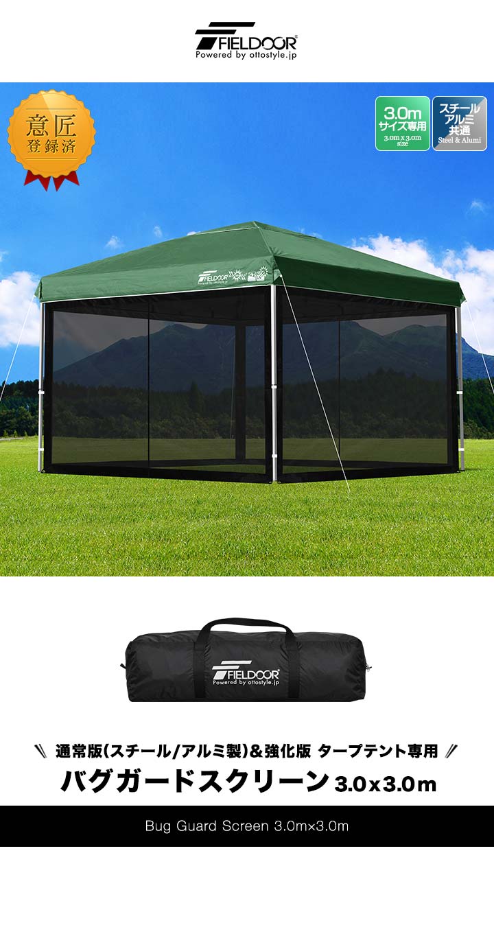 FIELDOOR タープ テント タープテント用 サイドシート メッシュ 4面 虫よけサイドシート 横幕 3m 3.0m 300 吊り下げ式 メッシュシート バグガードスクリーン 虫よけ 虫除け 蚊帳 オプション ワンタッチタープ専用 サイドシート 送料無料