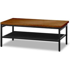 ローテーブル 幅90cm×奥行45cm (ダークブラウン) 棚付き アイアンセンターテーブル 2段 リビングテーブル ソファーテーブル コーヒーテーブル 送料無料