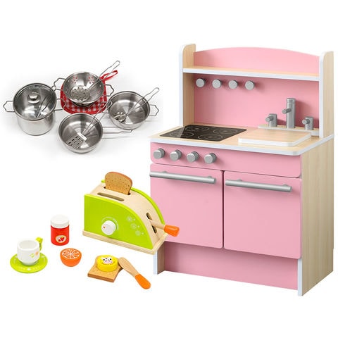 RiZKiZ ままごと キッチン (ピンク/本体&お鍋&トースターセット) 木製 子供 子ども 3歳~ ままごとセット ごっこ遊び ままごとキッチン ままごとキッチンセット 台所 おもちゃ 玩具 木製ままごと お料理 食材 知育玩具 かわいい プレゼント クリスマス 送料無料