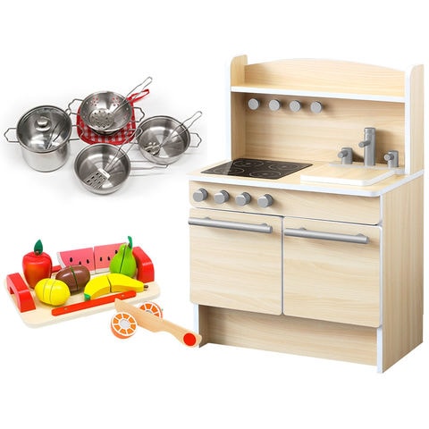 RiZKiZ ままごと キッチン (ビーチ/本体&お鍋&フルーツセット) 木製 子供 子ども 3歳~ ままごとセット ごっこ遊び ままごとキッチン ままごとキッチンセット 台所 おもちゃ 玩具 木製ままごと お料理 食材 知育玩具 かわいい プレゼント クリスマス 送料無料