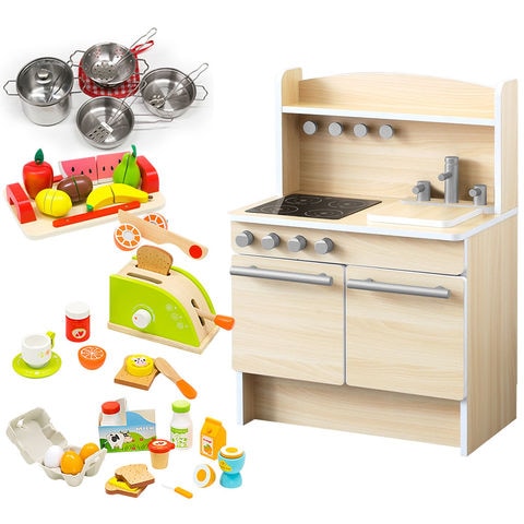 RiZKiZ ままごと キッチン (ビーチ/本体&お鍋&おもちゃ3種セット) 木製 子供 子ども 3歳~ ままごとセット ごっこ遊び ままごとキッチン ままごとキッチンセット 台所 おもちゃ 玩具 木製ままごと お料理 食材 知育玩具 かわいい プレゼント クリスマス 送料無料