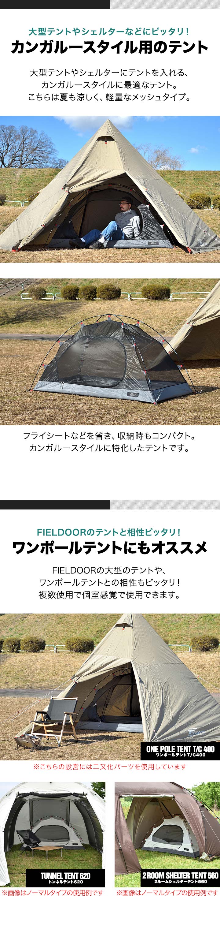 FIELDOOR カンガルーテント (本体&専用グランドシートセット) インナーテント メッシュタイプ 210cm×105cm ソロテント 一人用 ソロ 軽量 コンパクト 自立式 キャンプ アウトドア メッシュテント 蚊帳 テントinシェルター 追加 カンガルースタイル インナーテントのみ 送料無料
