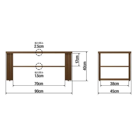 ローテーブル コーヒーテーブル (ウォールナット) 幅90cm×奥行45cm 棚付き 2段 センターテーブル 机 木目調テーブル ソファーテーブル 送料無料