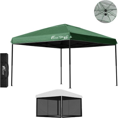 FIELDOOR ワンタッチタープテント 3m (遮光遮熱PU:グリーン/スチール/強化版サイドフレーム/4点脚ロック/Bバグガード付) 屋根柱 強化フレームモデル テント タープ 300 ワンタッチテント 大型 UVカット 撥水 日よけ プール イベント アウトドア キャンプ BBQ 送料無料