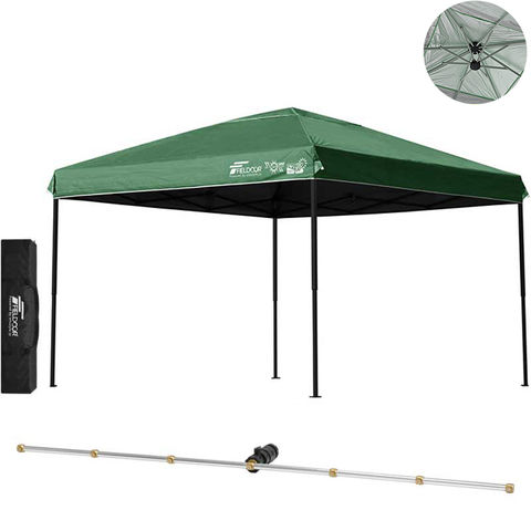 FIELDOOR ワンタッチタープテント 3m (遮光遮熱PU:グリーン/スチール/強化版サイドフレーム/4点脚ロック/Cミストシャワー付) 屋根柱 強化フレームモデル テント タープ 300 ワンタッチテント 大型 UVカット 撥水 日よけ プール イベント アウトドア キャンプ BBQ 送料無料