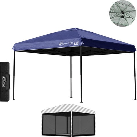 FIELDOOR ワンタッチタープテント 3m (遮光遮熱PU:ブルー/スチール/強化版サイドフレーム/4点脚ロック/Bバグガード付) 屋根柱 強化フレームモデル テント タープ 300 ワンタッチテント 大型 UVカット 撥水 日よけ プール イベント アウトドア キャンプ BBQ 送料無料
