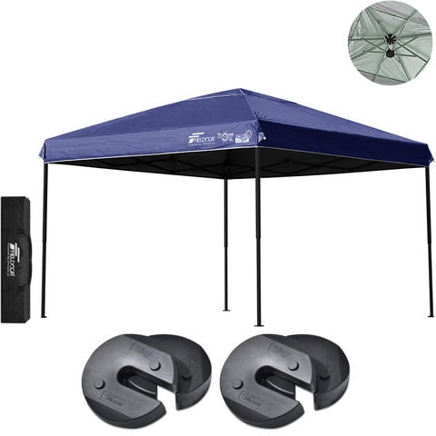 FIELDOOR ワンタッチタープテント 3m (遮光遮熱PU:ブルー/スチール/強化版サイドフレーム/4点脚ロック/Dウエイト4点付) 屋根柱 強化フレームモデル テント タープ 300 ワンタッチテント 大型 UVカット 撥水 日よけ プール イベント アウトドア キャンプ BBQ 送料無料