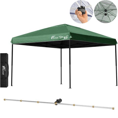 FIELDOOR ワンタッチタープテント 3m (遮光遮熱PU:グリーン/スチール/強化版サイドフレーム/センターロック/Cミストシャワー付) 屋根柱 強化フレームモデル タープ 300 ワンタッチテント 大型 UVカット 撥水 日よけ プール イベント アウトドア キャンプ BBQ 送料無料