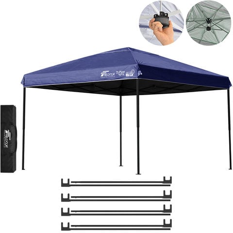 FIELDOOR ワンタッチタープテント 3m (遮光遮熱PU:ブルー/スチール/強化版サイドフレーム/センターロック/A強化サポート付) 屋根柱 強化フレームモデル テント タープ 300 ワンタッチテント 大型 UVカット 撥水 日よけ プール イベント アウトドア キャンプ BBQ 送料無料