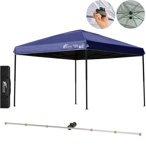 FIELDOOR ワンタッチタープテント 3m (遮光遮熱PU:ブルー/スチール/強化版サイドフレーム/センターロック/Cミストシャワー付) 屋根柱 強化フレームモデル テント タープ 300 ワンタッチテント 大型 UVカット 撥水 日よけ プール イベント アウトドア キャンプ BBQ 送料無料