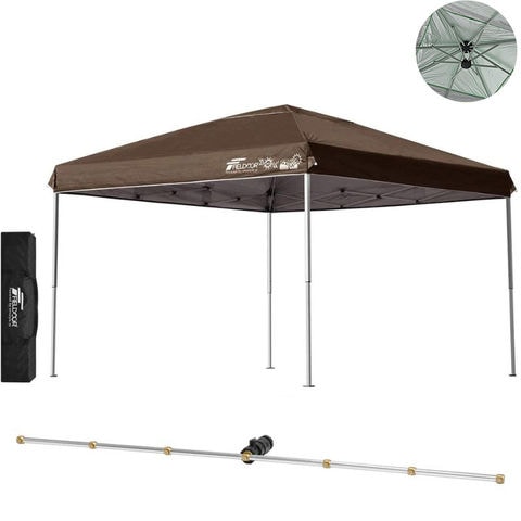 FIELDOOR ワンタッチタープテント 3m (標準:ダークブラウン/スチール/強化版サイドフレーム/4点脚ロック/Cミストシャワー付) 屋根柱 強化フレームモデル テント タープ 300 ワンタッチテント 大型 UVカット 撥水 日よけ プール イベント アウトドア キャンプ BBQ 送料無料
