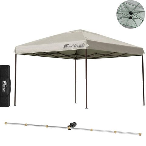 FIELDOOR ワンタッチタープテント 3m (標準:ライトベージュ/スチール/強化版サイドフレーム/4点脚ロック/Cミストシャワー付) 屋根柱 強化フレームモデル テント タープ 300 ワンタッチテント 大型 UVカット 撥水 日よけ プール イベント アウトドア キャンプ BBQ 送料無料