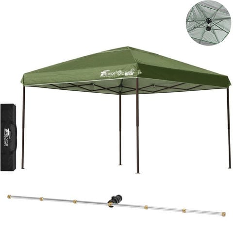 FIELDOOR ワンタッチタープテント 3m (標準:カーキ/スチール/強化版サイドフレーム/4点脚ロック/Cミストシャワー付) 屋根柱 強化フレームモデル テント タープ 300 3.0m ワンタッチテント 大型 UVカット 撥水 日よけ プール イベント アウトドア キャンプ BBQ 送料無料