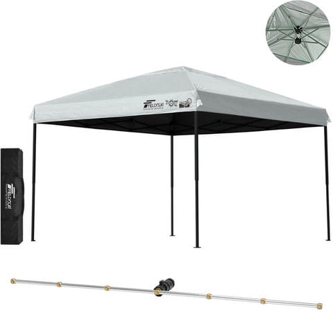 FIELDOOR ワンタッチタープテント 3m (遮光遮熱PU:グレー/スチール/強化版サイドフレーム/4点脚ロック/Cミストシャワー付) 屋根柱 強化フレームモデル テント タープ 300 ワンタッチテント 大型 UVカット 撥水 日よけ プール イベント アウトドア キャンプ BBQ 送料無料