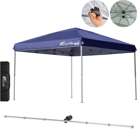FIELDOOR ワンタッチタープテント 3m (標準:ブルー/スチール/強化版サイドフレーム/センターロック/Cミストシャワー付) 屋根柱 強化フレームモデル テント タープ 300 ワンタッチテント 大型 UVカット 撥水 日よけ プール イベント アウトドア キャンプ BBQ 送料無料