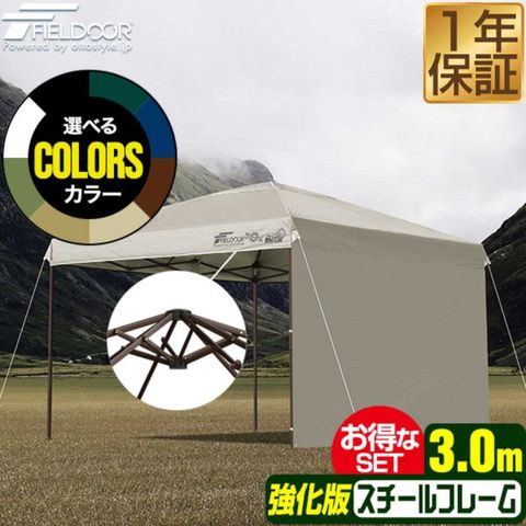 FIELDOOR ワンタッチタープテント 3m (遮光遮熱PU:グレー/スチール/強化版サイドフレーム/センターロック/タープ本体のみ/サイドシート1枚付) テント タープ ワンタッチテント ワンタッチタープ UV加工 撥水 ベンチレーション 日よけ キャンプ 送料無料