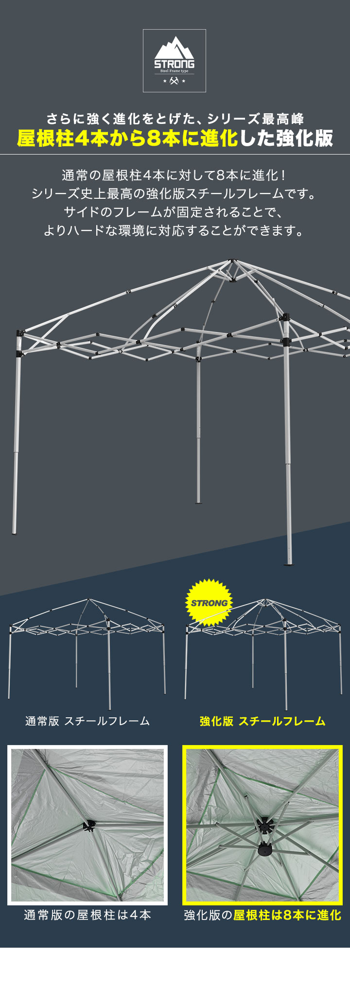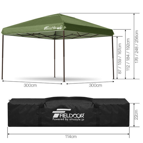 | サイズ: 組立時 : (約)3.0m×3.0m×1.76m / 2.48m / 2.56m 収納時 : (約)22cm×22cm×114cm |