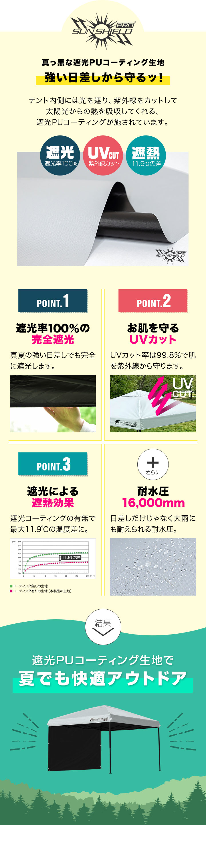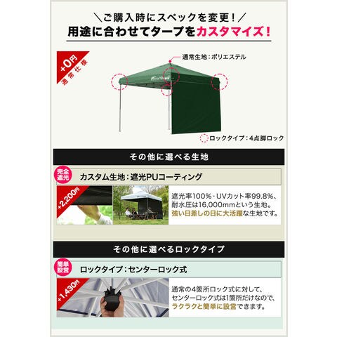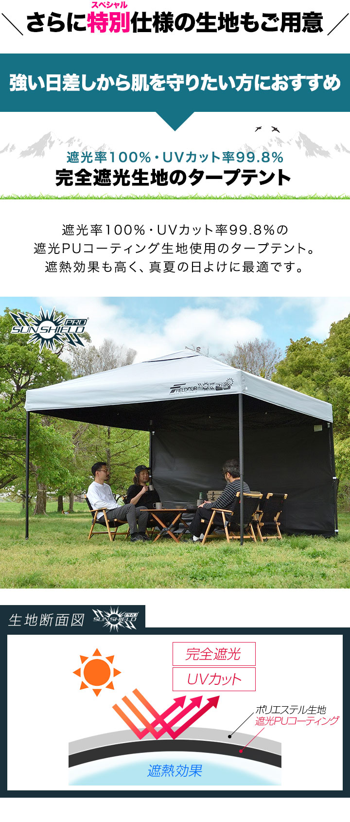 FIELDOOR ワンタッチタープテント 3m (遮光遮熱PU:グリーン/スチール/強化版サイドフレーム/4点脚ロック/タープ本体のみ/サイドシート1枚付) 横幕セット タープ 300 ワンタッチテント ワンタッチタープ 大型 簡単 UVカット 撥水 日よけ アウトドア キャンプ 送料無料