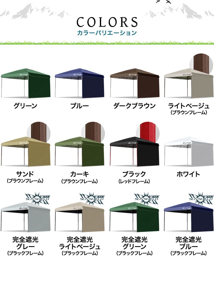 | カラー: ・グリーン ・ブルー ・ダークブラウン ・ライトベージュ ・サンド ・カーキ ・ブラック ・ホワイト ・完全遮光/グレー ・完全遮光/ライトベージュ ・完全遮光/グリーン ・完全遮光/ブルー |