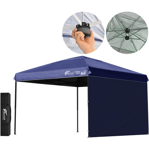 FIELDOOR ワンタッチタープテント 3m (遮光遮熱PU:ブルー/スチール/強化版サイドフレーム/センターロック/タープ本体のみ/サイドシート1枚付) 横幕セット タープ 300 ワンタッチテント ワンタッチタープ 大型 簡単 UVカット 撥水 日よけ アウトドア キャンプ 送料無料