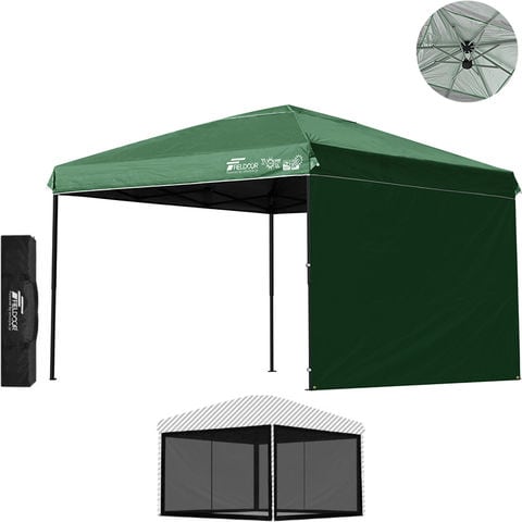 FIELDOOR ワンタッチタープテント 3m (遮光遮熱PU:グリーン/スチール/強化版サイドフレーム/4点脚ロック/Bバグガード付/サイドシート1枚付) 横幕セット タープ 300 ワンタッチテント ワンタッチタープ 大型 簡単 UVカット 撥水 日よけ アウトドア キャンプ 送料無料