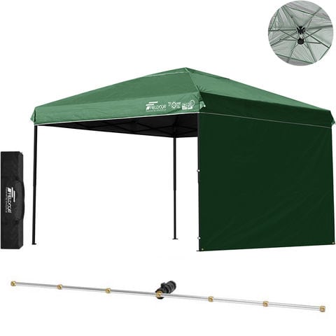 FIELDOOR ワンタッチタープテント 3m (遮光遮熱PU:グリーン/スチール/強化版サイドフレーム/4点脚ロック/Cミストシャワー付/サイドシート1枚付) 横幕セット タープ 300 ワンタッチテント ワンタッチタープ 大型 簡単 UVカット 撥水 日よけ アウトドア キャンプ 送料無料