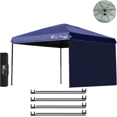 FIELDOOR ワンタッチタープテント 3m (遮光遮熱PU:ブルー/スチール/強化版サイドフレーム/4点脚ロック/A強化サポート付/サイドシート1枚付) 横幕セット タープ 300 ワンタッチテント ワンタッチタープ 大型 簡単 UVカット 撥水 日よけ アウトドア キャンプ 送料無料