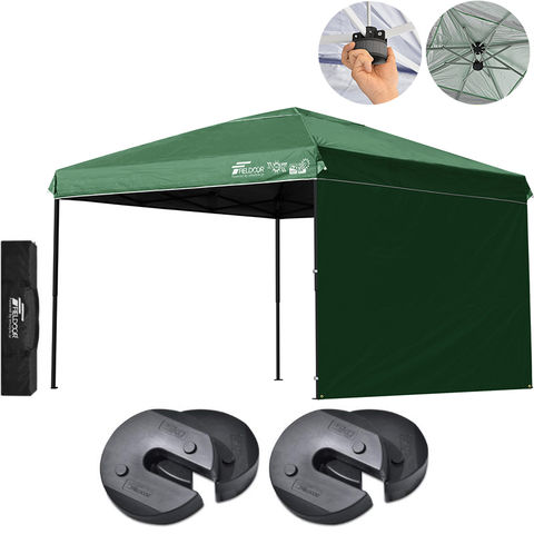 FIELDOOR ワンタッチタープテント 3m (遮光遮熱PU:グリーン/スチール/強化版サイドフレーム/センターロック/Dウエイト4点付/サイドシート1枚付) 横幕セット タープ 300 ワンタッチテント ワンタッチタープ 大型 簡単 UVカット 撥水 日よけ アウトドア キャンプ 送料無料