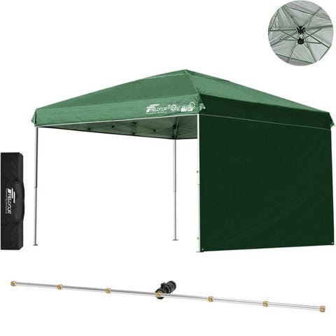 FIELDOOR ワンタッチタープテント 3m (標準:グリーン/スチール/強化版サイドフレーム/4点脚ロック/Cミストシャワー付/サイドシート1枚付) 横幕セット タープ 300 ワンタッチテント ワンタッチタープ 大型 簡単 UVカット 撥水 日よけ アウトドア キャンプ 送料無料