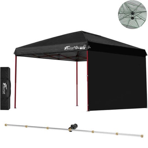 FIELDOOR ワンタッチタープテント 3m (標準:ブラック/スチール/強化版サイドフレーム/4点脚ロック/Cミストシャワー付/サイドシート1枚付) 横幕セット タープ 300 ワンタッチテント ワンタッチタープ 大型 簡単 UVカット 撥水 日よけ アウトドア キャンプ 送料無料