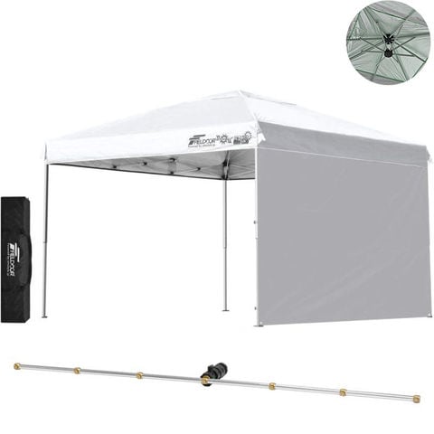 FIELDOOR ワンタッチタープテント 3m (標準:ホワイト/スチール/強化版サイドフレーム/4点脚ロック/Cミストシャワー付/サイドシート1枚付) 横幕セット タープ 300 ワンタッチテント ワンタッチタープ 大型 簡単 UVカット 撥水 日よけ アウトドア キャンプ 送料無料